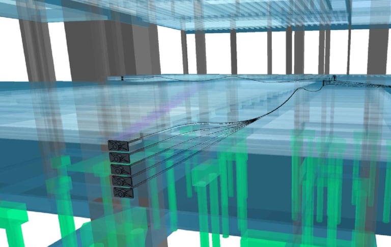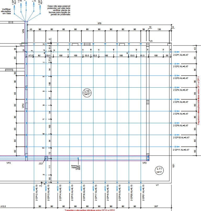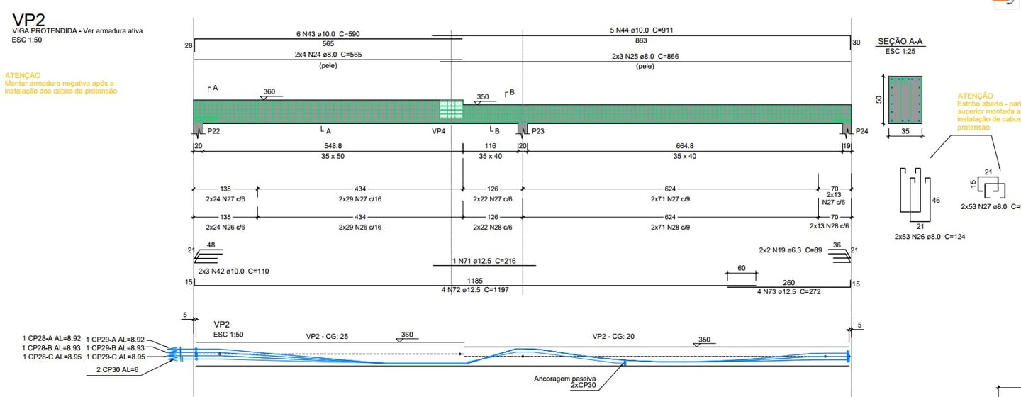 Atuamos em projetos de lajes vigas e pisos protendidos. A solução de protensão é extremamente alinhada com a redução dos prazos de construção, além de proporcionar economia brutal no consumo de aço passivo.