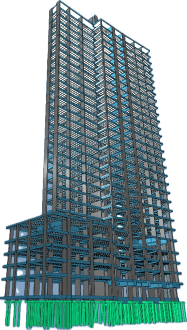 Trabalhamos com concreto armado, protendido, estruturas metálicas, além de projetos de reforço estrutural.